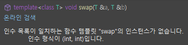 컴파일러는 함수 호출부를 확인하여 -위의 예제에서는 swap(a, b);- 넘겨진 인수의 타입을 판별합니다.
